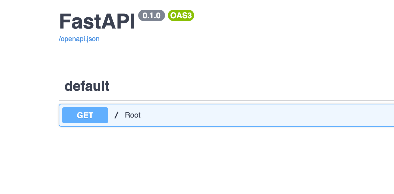 }FastAPI will automatically generate a /docs endpoint that will show you the API documentation. If you were to visit /docs, you would see the following: